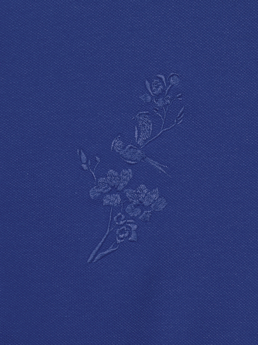 Shanghai Tang's take on the classic polo shirt is a firm fan favourite. Reimagined with our iconic Mandarin collar, this everyday staple has a bit of sporty chic, a dash of modern Chinese elegance and everything in between. This slim-fitted style from the Chinese Garden collection features nature-inspired embroidery of birds in tone-on-tone thread that is discreet but no less stylish.
