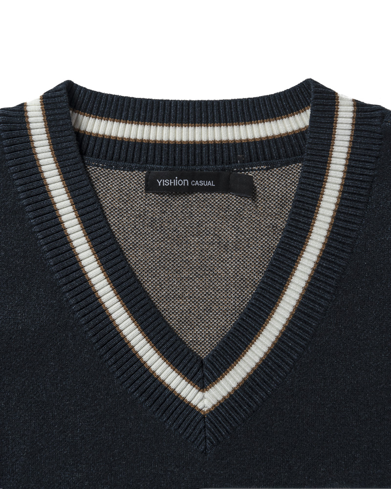 Regular Knitted V Neck Varsity Vest with Contrasting ColourNeckline and Hems. Comes with 'COURAGE' Slogan at the front. Made of cotton. Colours available: Dark Blue