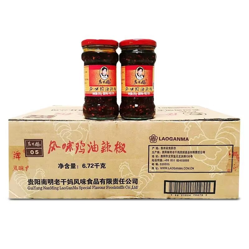 Laoganma flavor chicken oil Chili sauce 280g*24 spicy chicken diced Guizhou flavor oil chili pepper bibimbap sauce