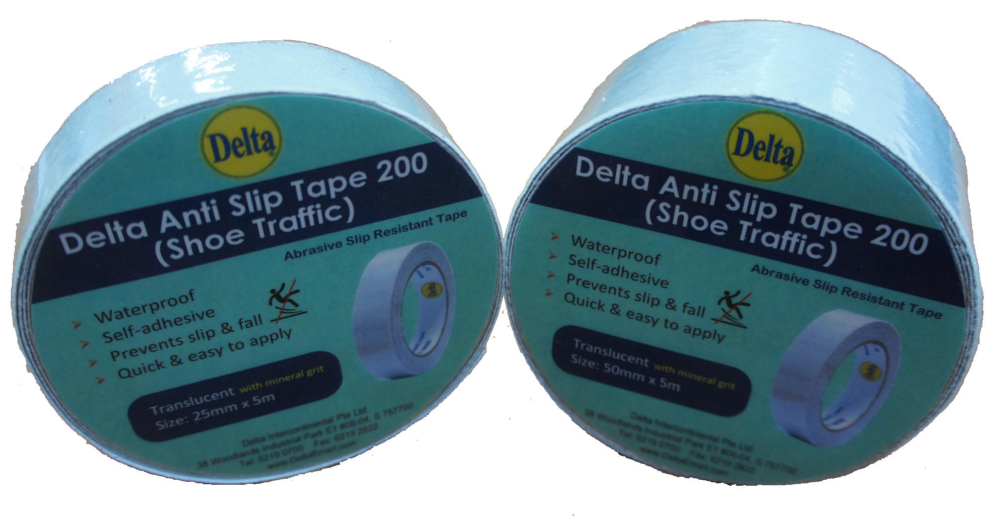 Delta Anti Slip Tape (Shoe Traffic) is an abrasive slip resistant tape that comes with durable mineral grit that is suitable for areas with shoe traffic. It comes in two different sizes: "25mm x 5m" and "50mm x 5m".
