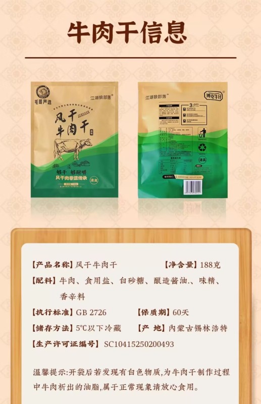 ianghu Wolf Tribe with Inner Mongolia non-legacy dried beef jerky grassland specialty super dry chewy snacks