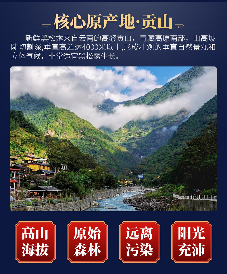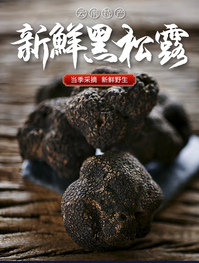 Fresh black truffle wild mushroom Yunnan specialty fresh truffle fresh white truffle pig arch mushroom block [fresh] 7-8CM [selected mature black] 1000g