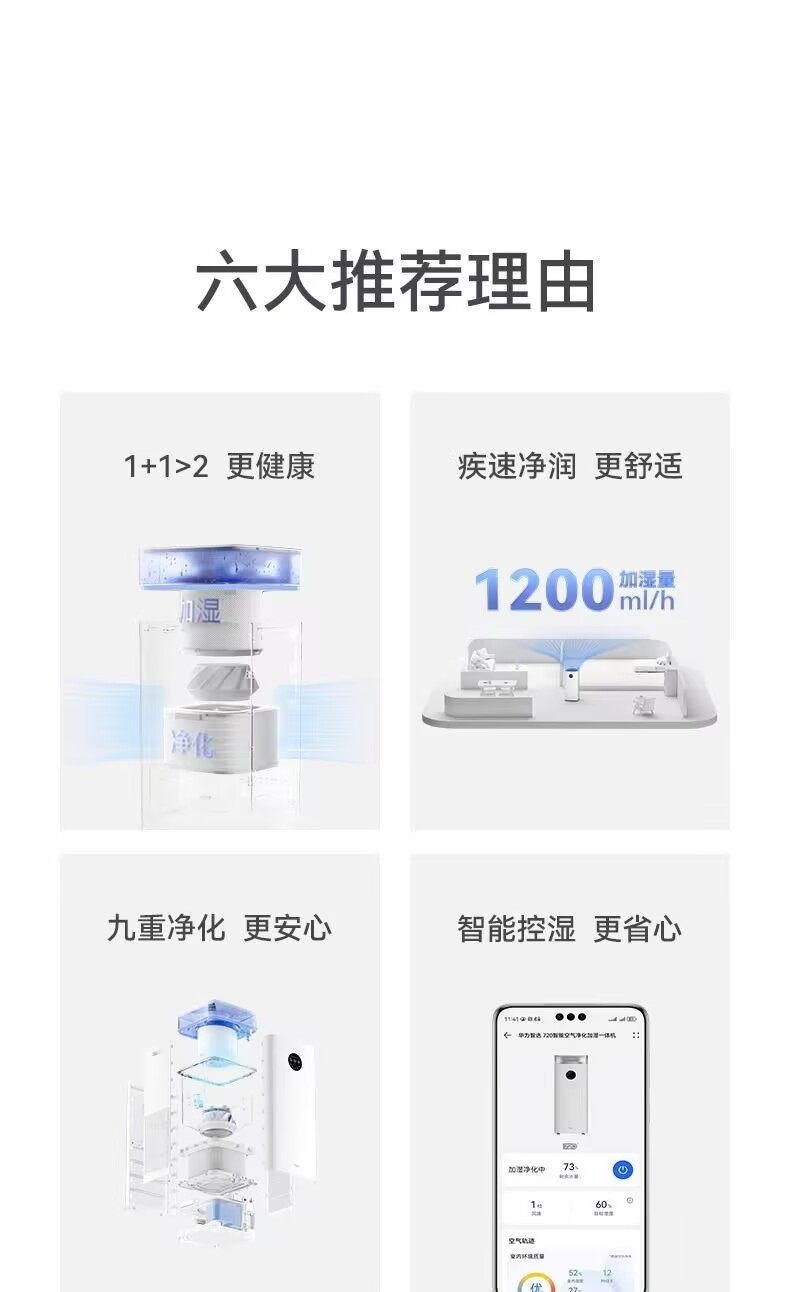 Huawei Intelligent Selection 720 Air Purification and Humidification Machine Intelligent Fogless Humidifier Sterilization and Disinfection of Home Bedroom