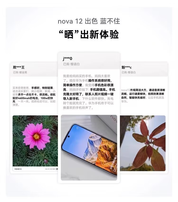 Huawei nova 12 100W intelligent fast charging Turbo front 60 million 4K ultra wide-angle portrait HarmonyOS wisdom.