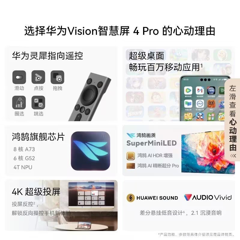 Huawei Vision Smart Screen 4Pro 85-inch SuperMiniLED eight nuclear Chip Ultra HD TV