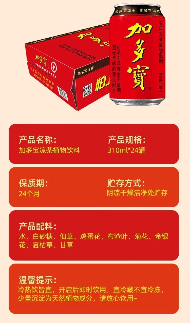 Jiaduobao herbal tea drink 310ml*24/ box, afraid of getting angry, drink Jiaduobao whole box of herbal drinks 1 box of 24 cans