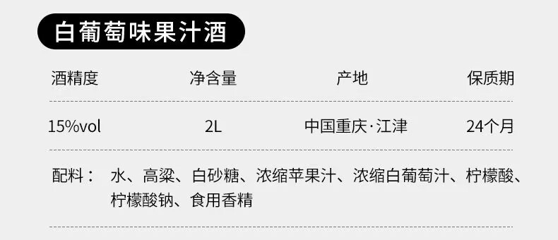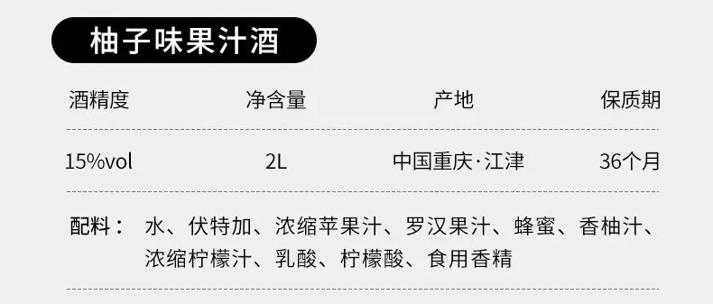 Jiang Xiaobai Fruit Cube 2L Fruit Wine Party Juice Wine Peach Grapefruit Lemon Super Capacity Fruit Wine