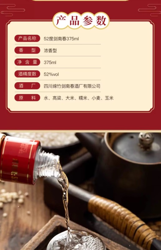 Jiannanchun Crystal Sword 52 degrees 375mL Luzhou-flavor
