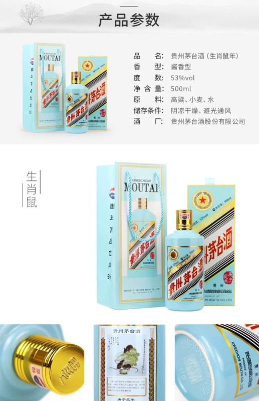 Kweichow Moutai Zodiac Commemorative Liquor Gengzi Rat Year 500ml53-degree Maotai-flavor liquor