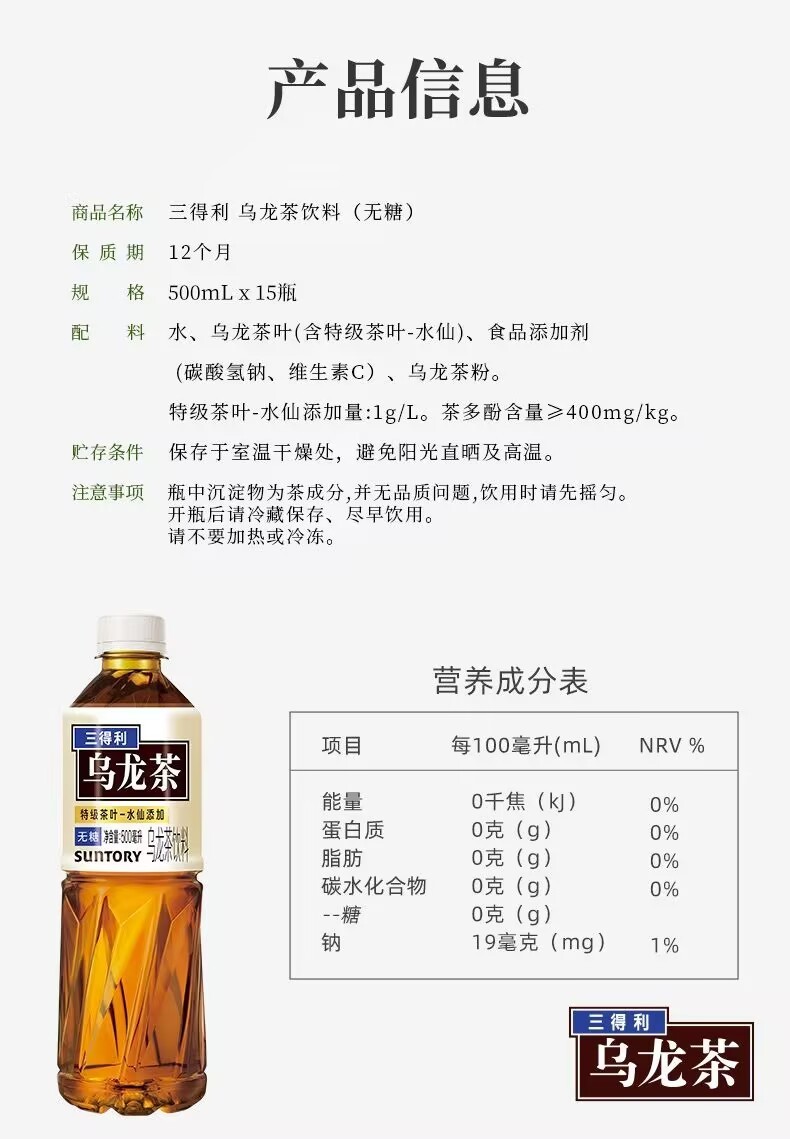 Suntory Oolong Tea Drinks Sugar-free 500mlx15 Bottles of Whole Box Catering Tea Drinks with Low Calories.