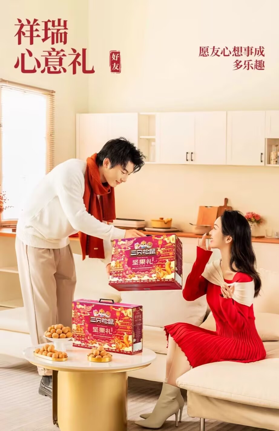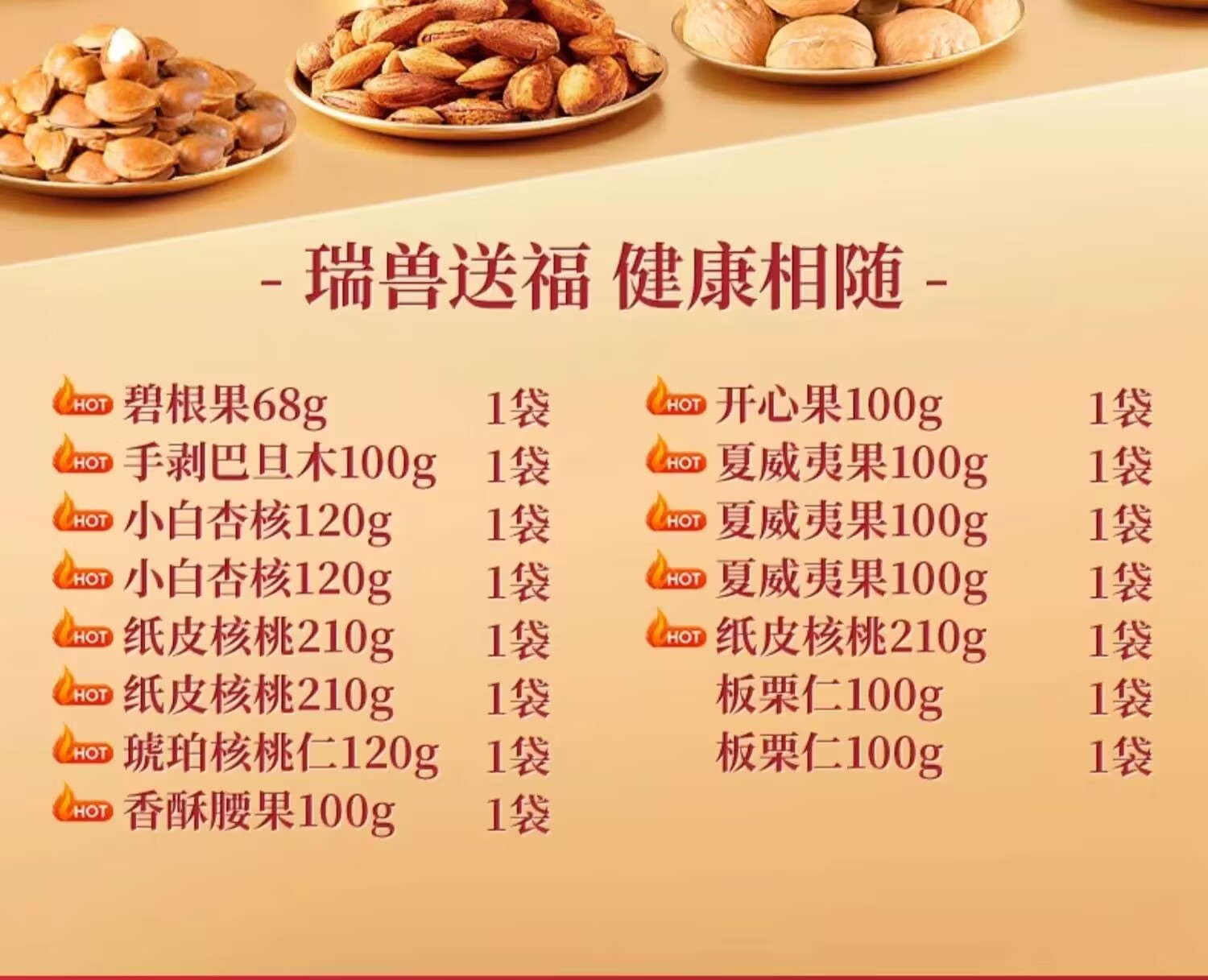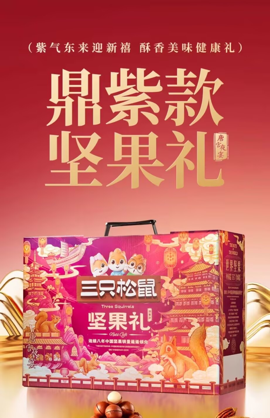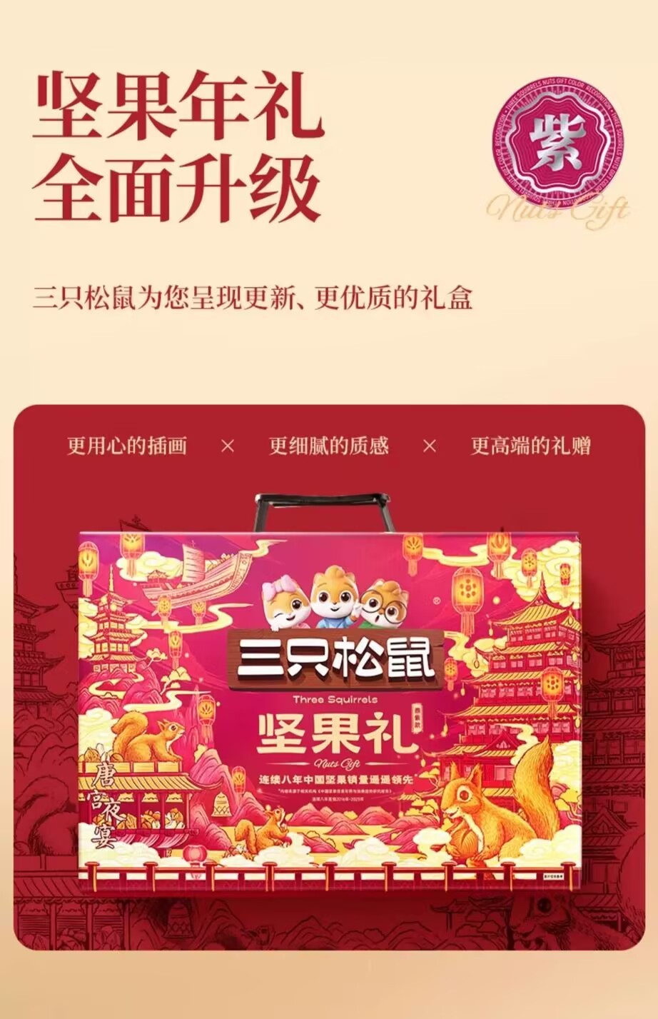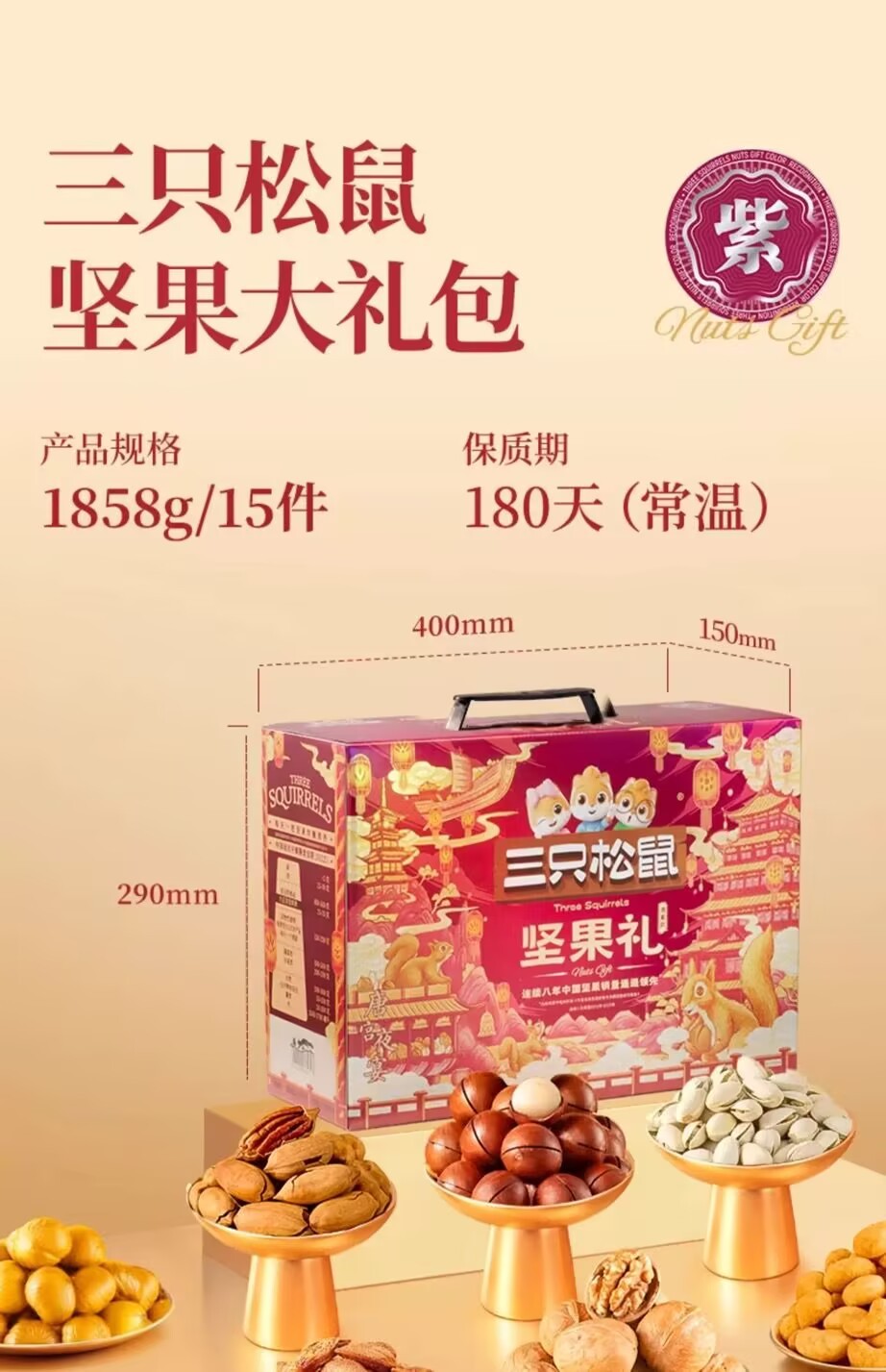 Three squirrel nuts gift box Ding Zi 15 bags /1858 gramsThree squirrel nuts gift box Ding Zi 15 bags /1858 grams