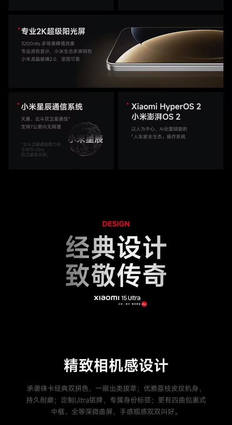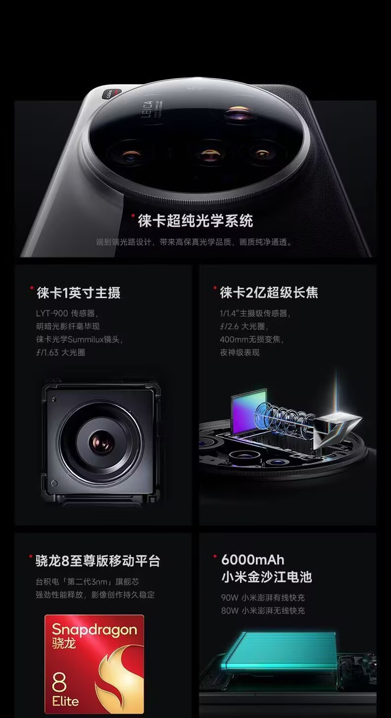 Xiaomi/ Xiaomi 15Ultra Snapdragon 8 Supreme Leica Optical 6000mAh Jinshajiang battery 5G mobile phone