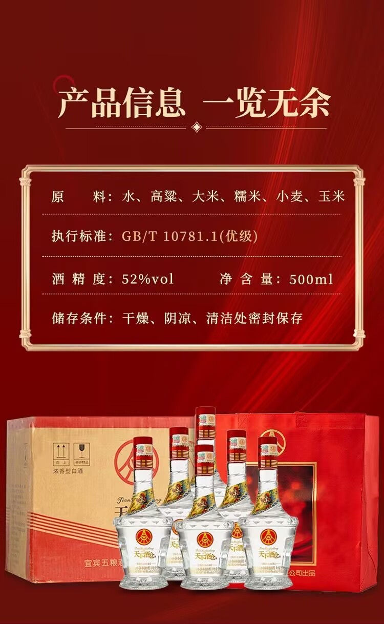 Yibin Wuliangye Co., Ltd. Wuliangye 52-degree Luzhou-flavor liquor pure grain wine 500ml*6 gift box