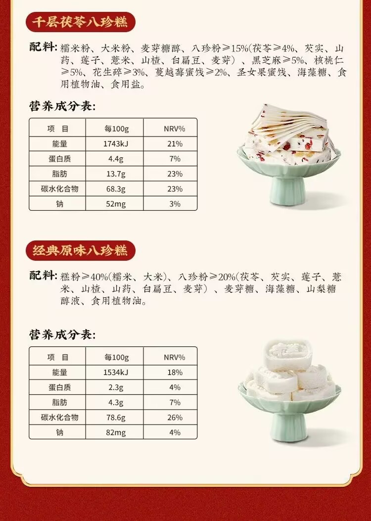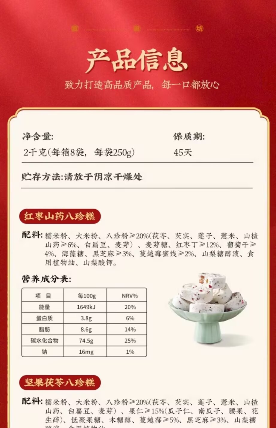 Zhen Mill, Red Dates, Yams, Bazhen Cake, Nuts, Poria and Euryale ferox Cake, Sugar-free and Multi-flavor Snacks Gift Boxes