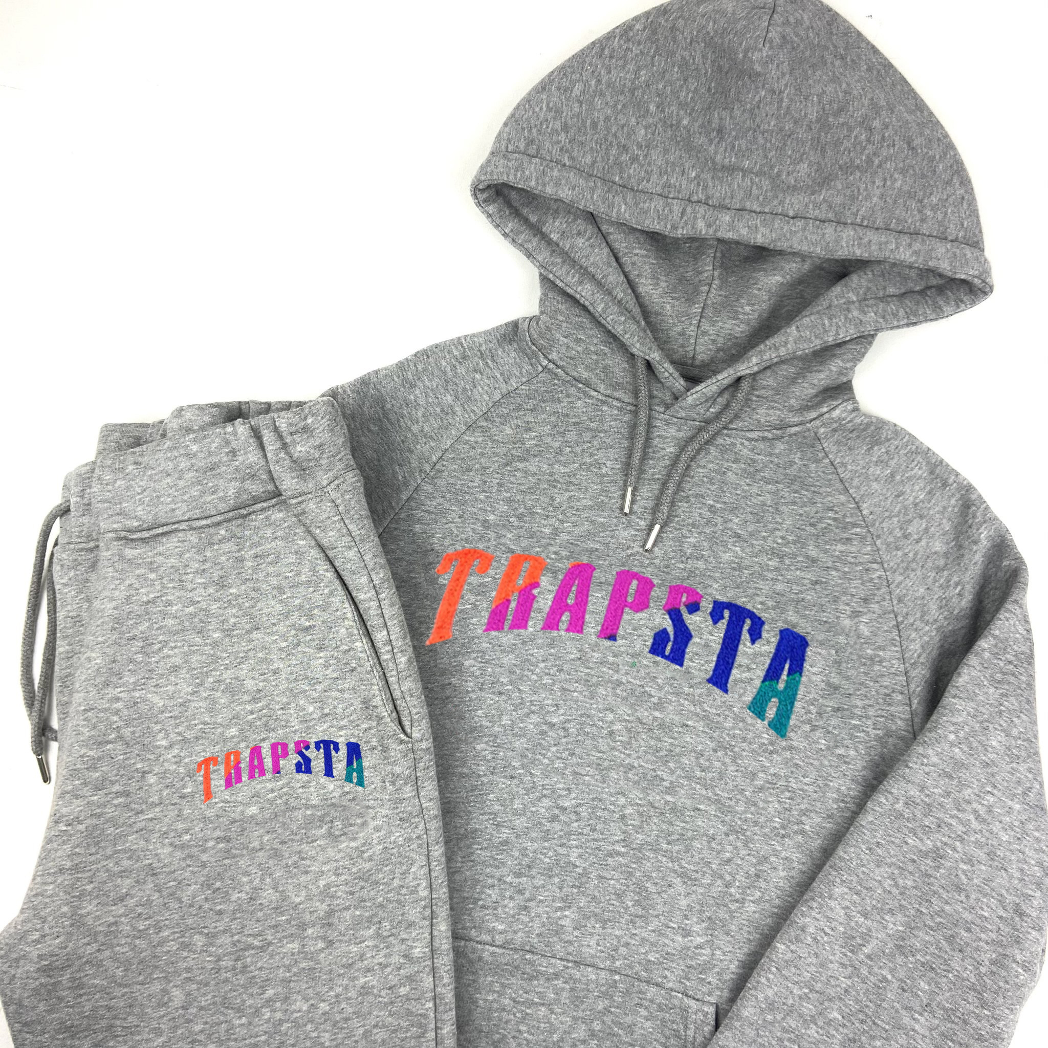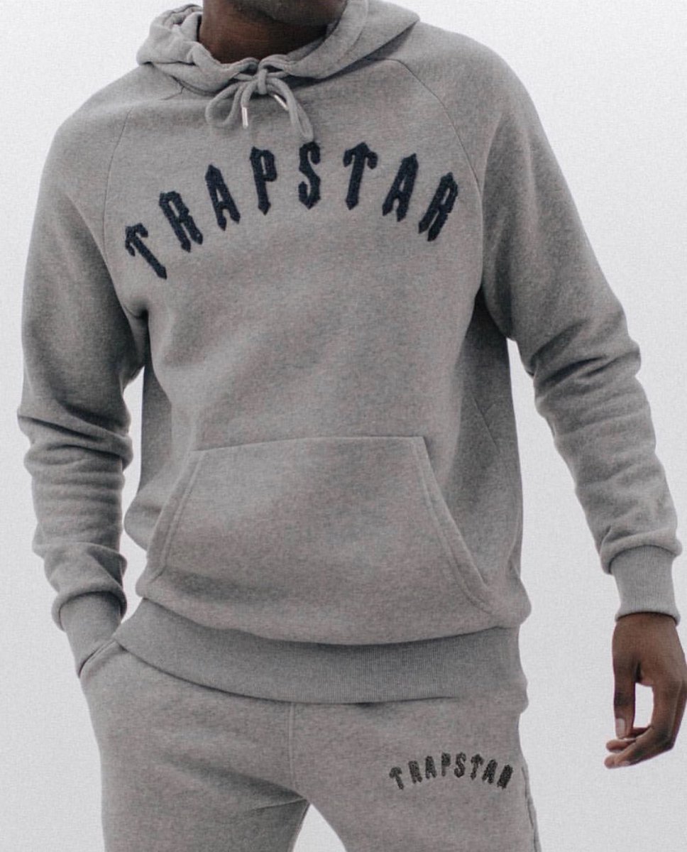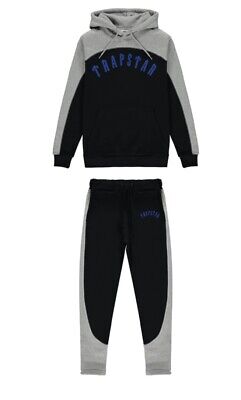 Trapstar London Chenille Embroidery Tracksuit Black & Grey Hooded Sweatsuits Track Suits Training & Jogging Wear Tracksuits