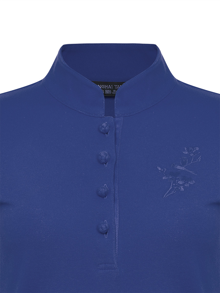 Shanghai Tang's take on the classic polo shirt is a firm fan favourite. Reimagined with our iconic Mandarin collar, this everyday staple has a bit of sporty chic, a dash of modern Chinese elegance and everything in between. This slim-fitted style from the Chinese Garden collection features nature-inspired embroidery of birds in tone-on-tone thread that is discreet but no less stylish.