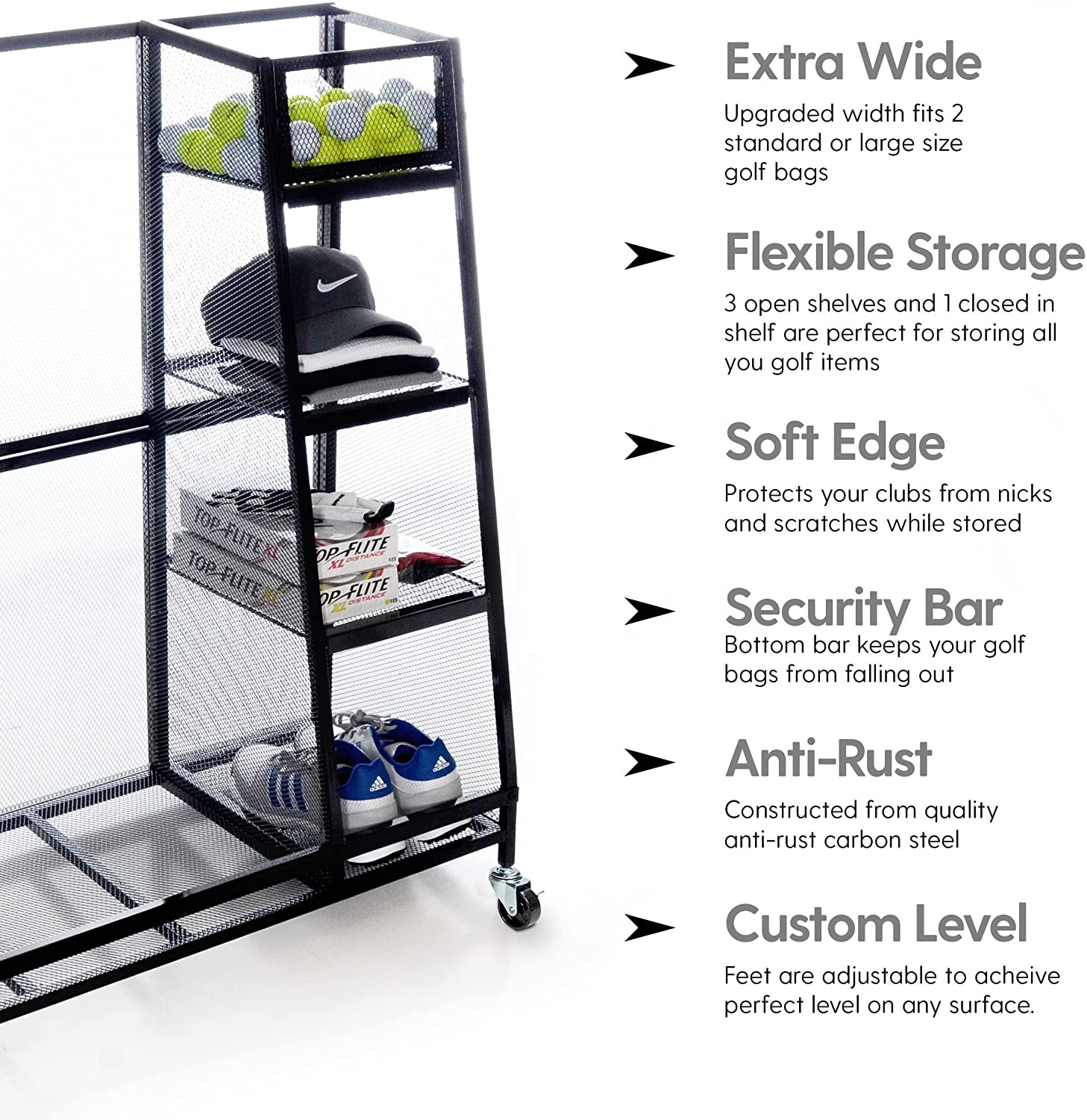 Golf Organizer,Extra Large Size,Fit 2 Golf Bags And Other Golfing Equipment And Accessories Garage Storage Rack