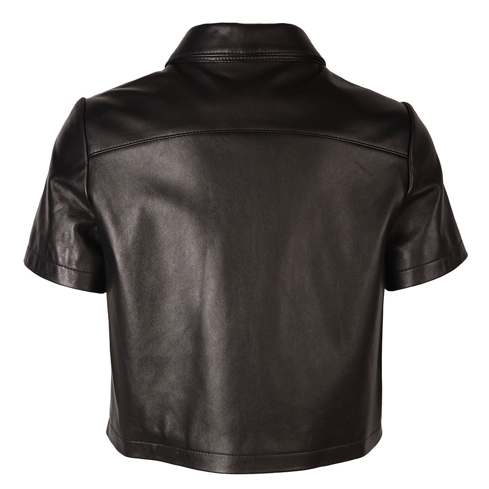 Short Sleeve Single Breasted Short Real Leather Jacket Shirt Women 2022 Autumn New