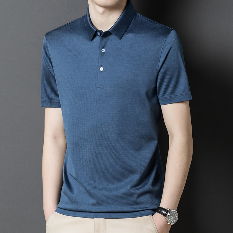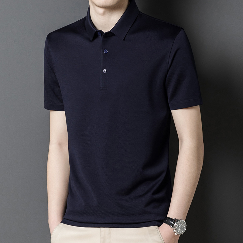 Factory Wholesale Men's Luxury Natural Material Silk Polo Shirts Solid 4 Colours