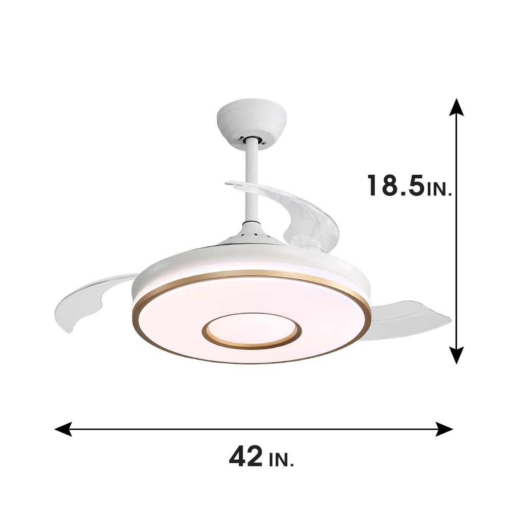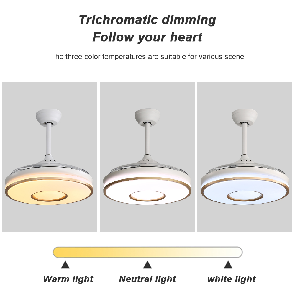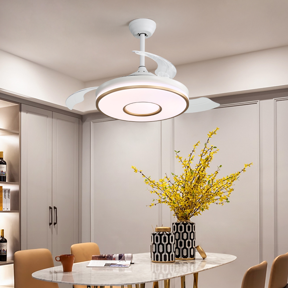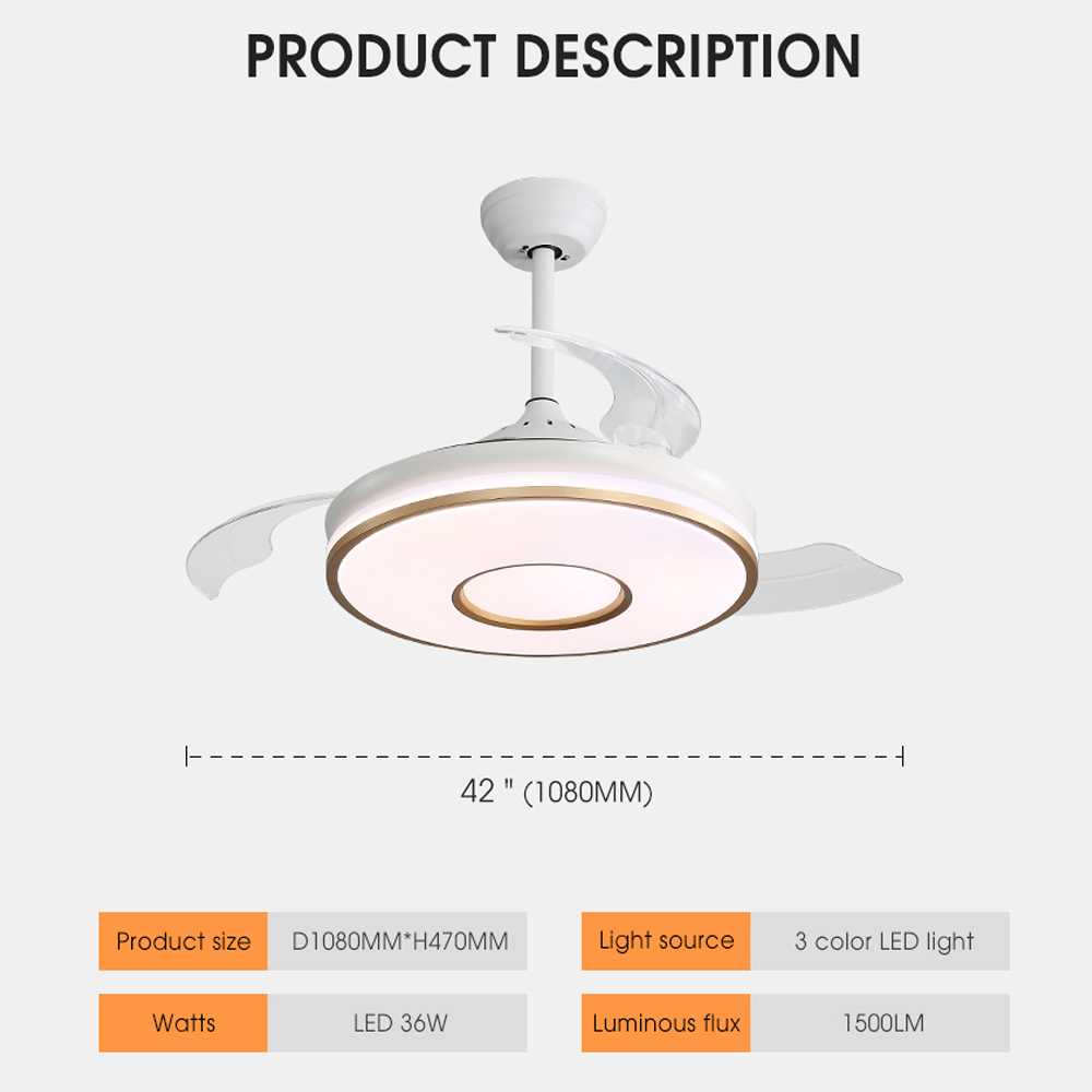 Hot Sale Indoor Retractable Invisible 42 Inch 75w Remote Control Dc Smart Ceiling Fan With Light