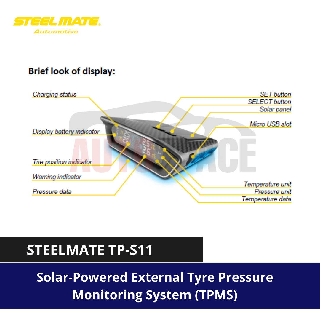 ➡️ Steelmate TPMS MT11 Solar Energy Display with Internal Sensor