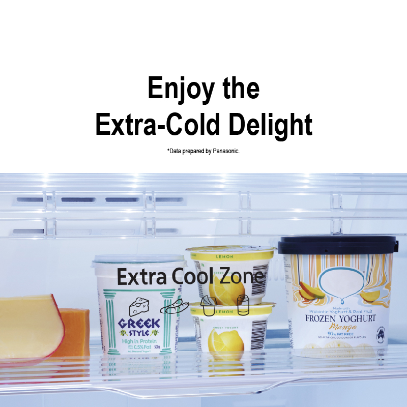 The Extra Cool Zone is fantastic for chilling drinks or cooling something quickly. The cover cools items at approx. 2°C, slightly colder than the regular fridge compartment at approx. 4°C.