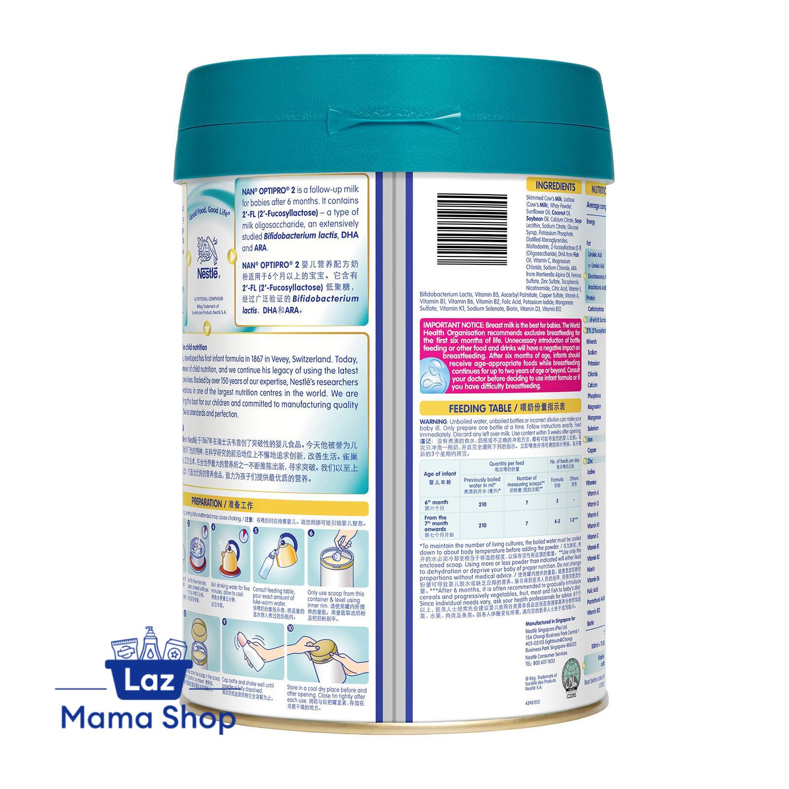 Nestle NAN OPTIPRO 2 Follow-Up Formula 2'FL 850g Milk Powder (Laz Mama Shop)