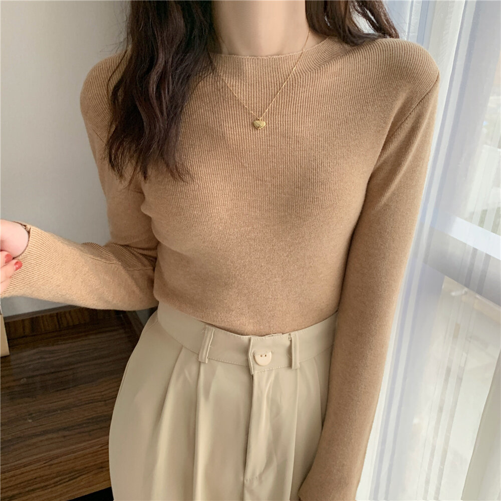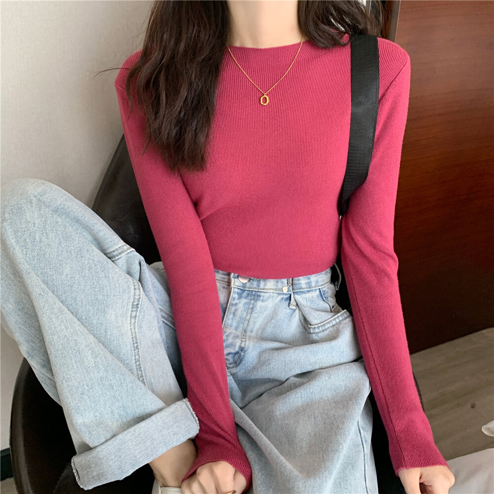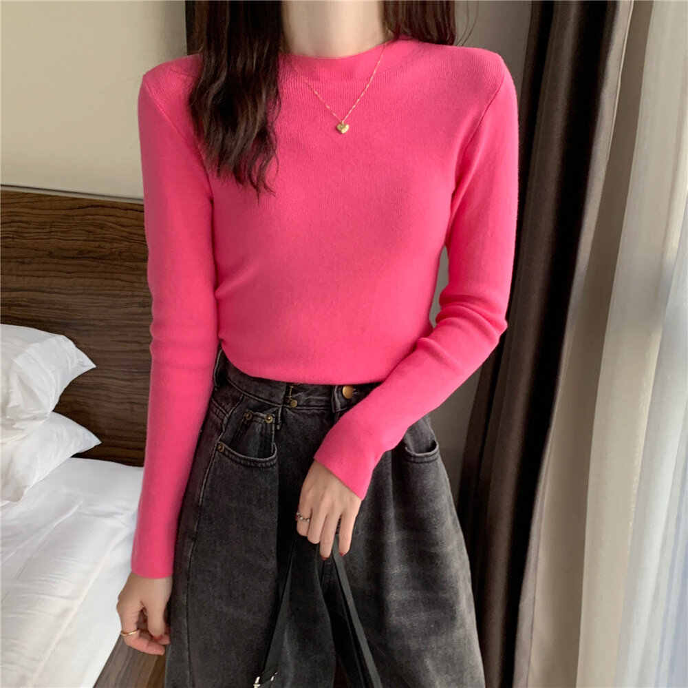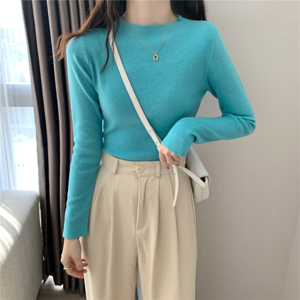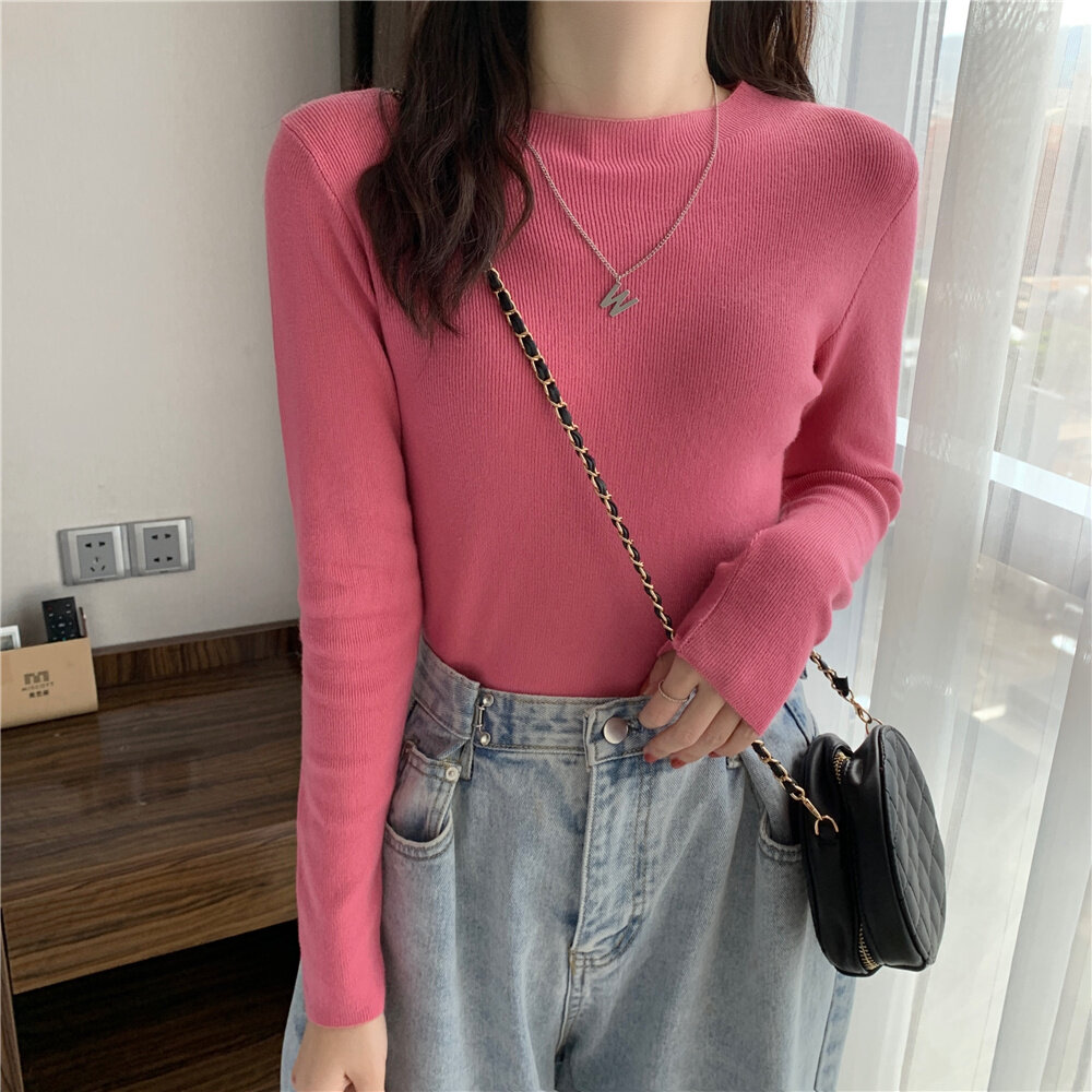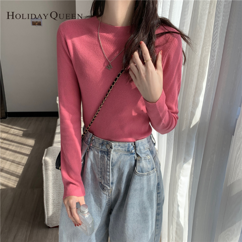 HolidayQueen Fall/Winter Full Color Basics All-match Solid Color Top Knit Sweater 15 Colors Free Shipping HQ1778