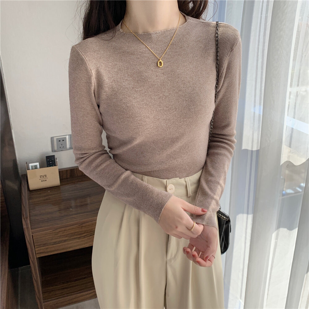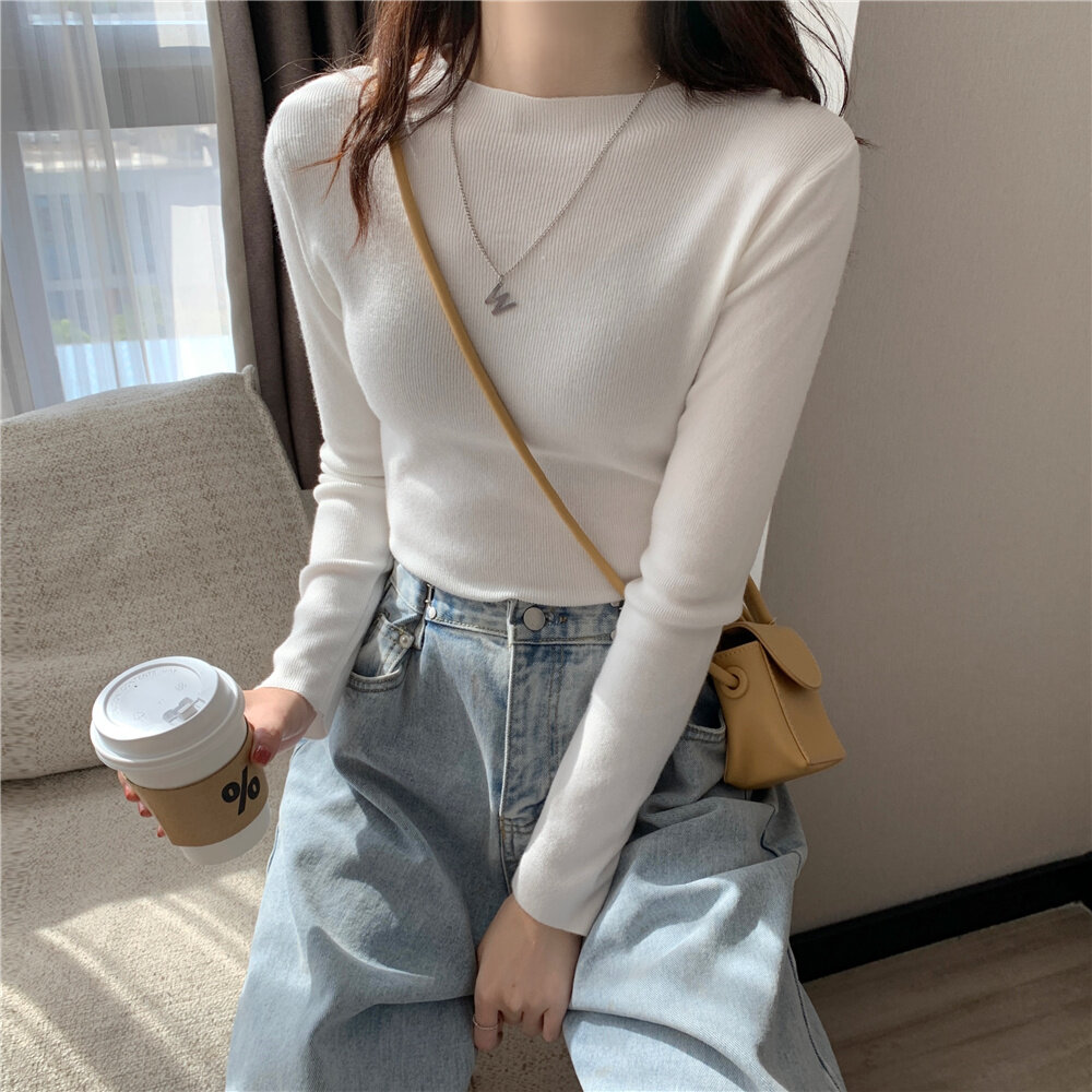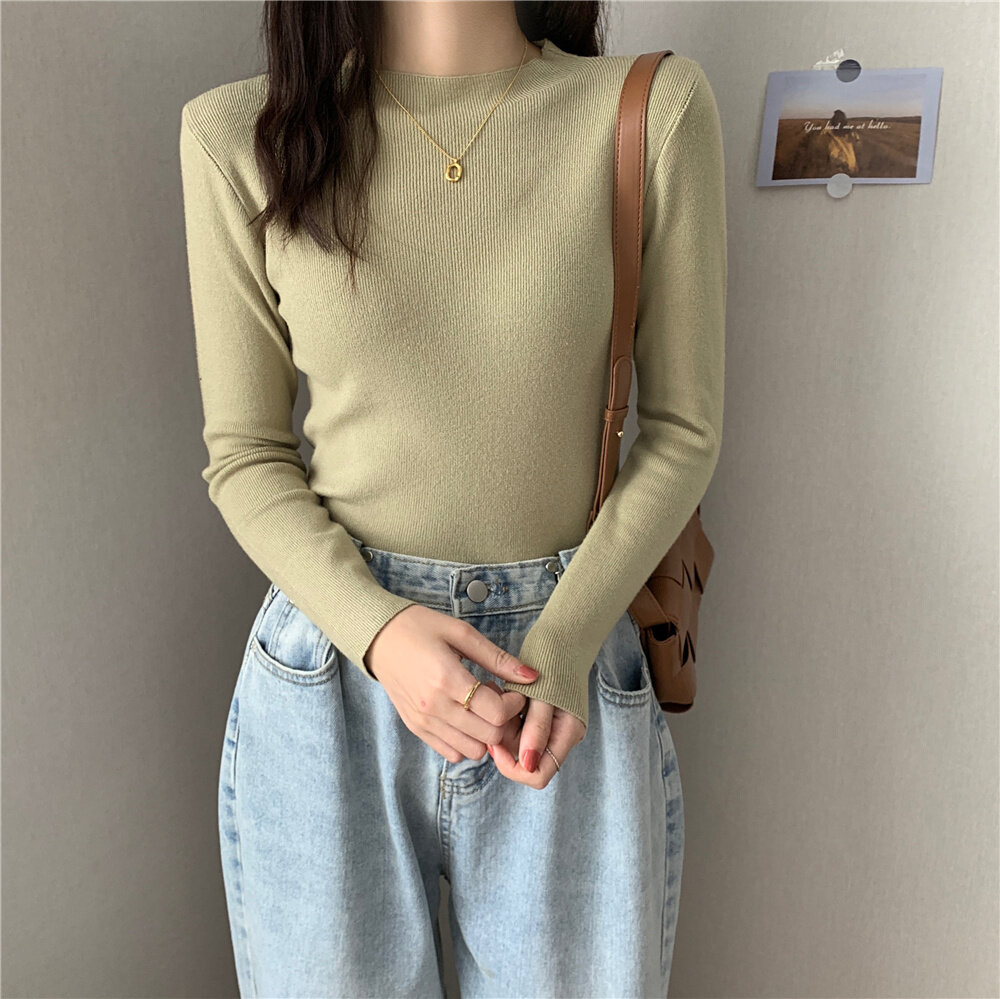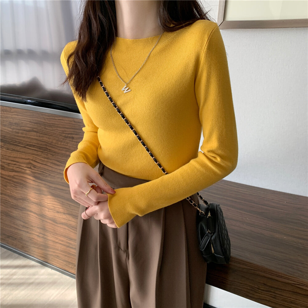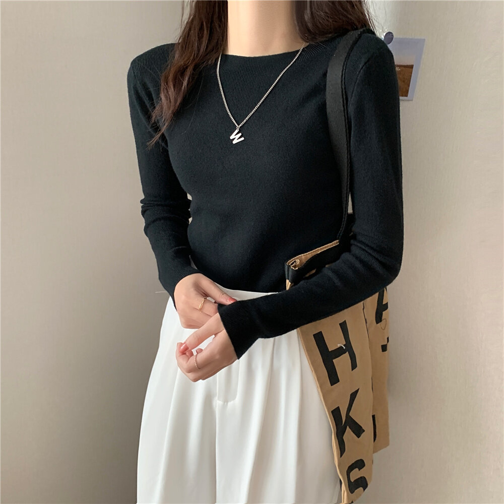 HolidayQueen Fall/Winter Full Color Basics All-match Solid Color Top Knit Sweater 15 Colors Free Shipping HQ1778