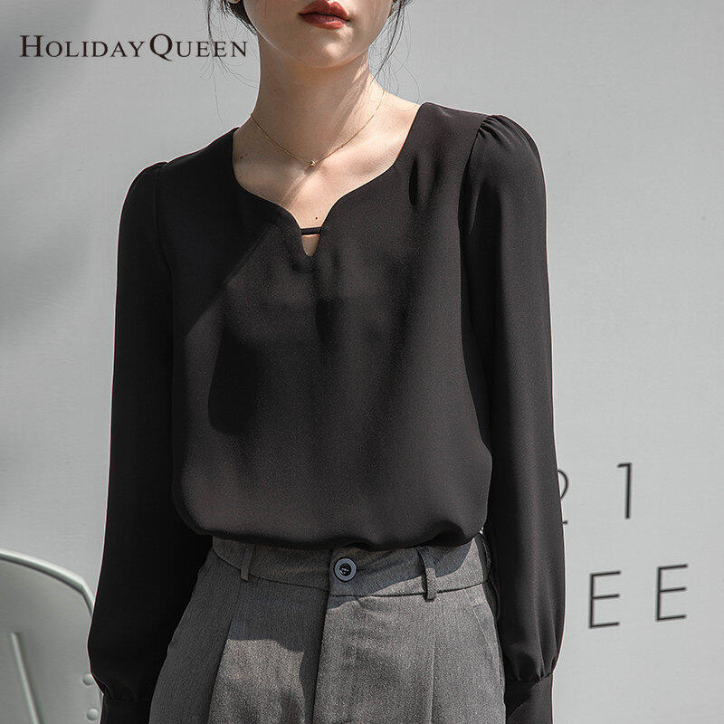 HolidayQueen New Temperament Drop Collar Shirt Women Early Autumn Retro New Design Niche Shirt Women's Top Free Shipping HQ1799