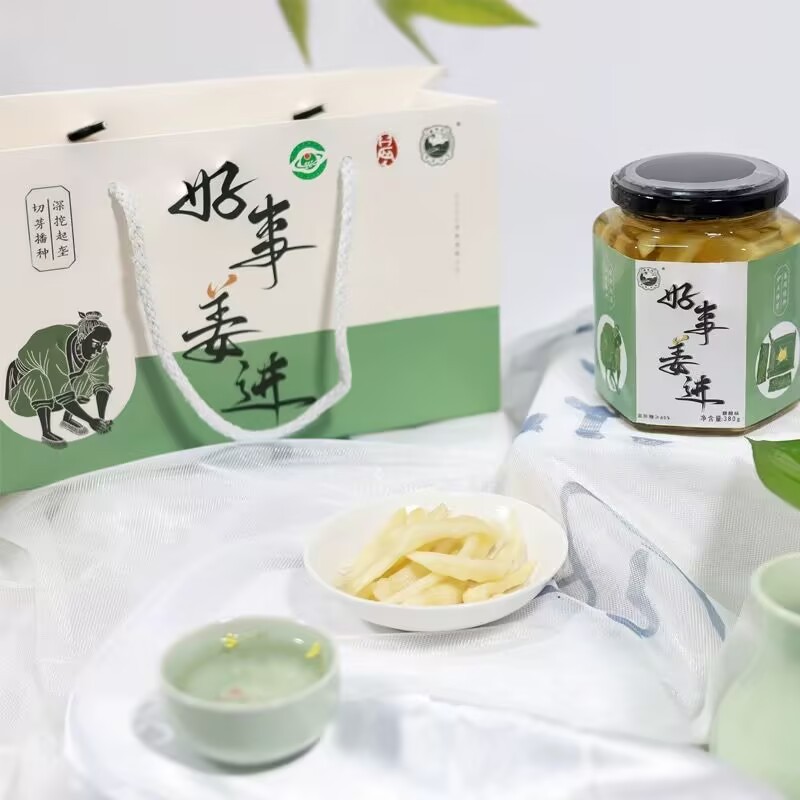 Anhui specialty Jinfengyuan Tongling white ginger sweet and sour soy sauce soaked ginger tasting gift bag 380g*2 bottles