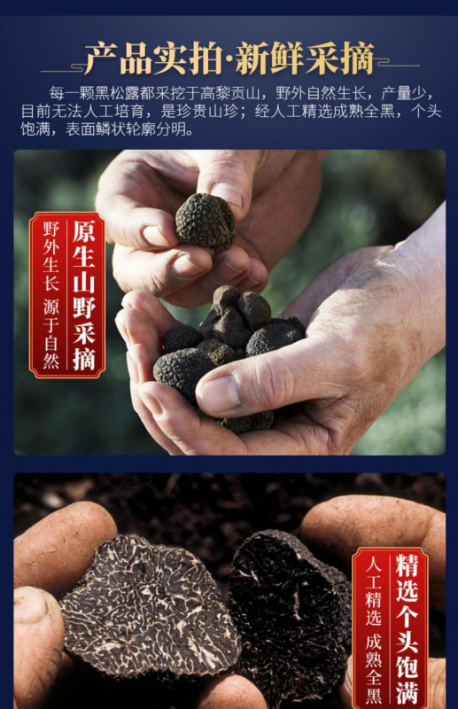 Fresh black truffle wild mushroom Yunnan specialty fresh truffle fresh white truffle pig arch mushroom block [fresh] 7-8CM [selected mature black] 1000g