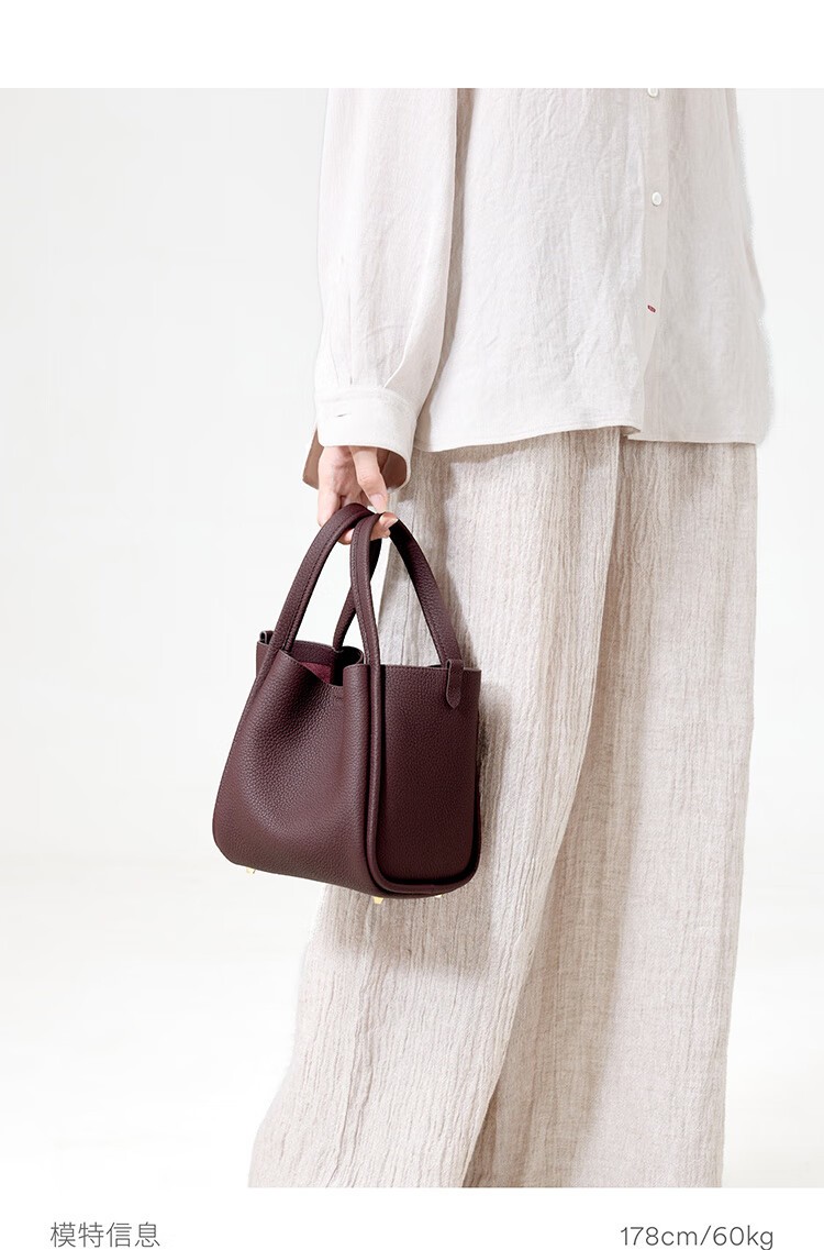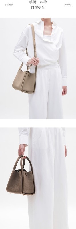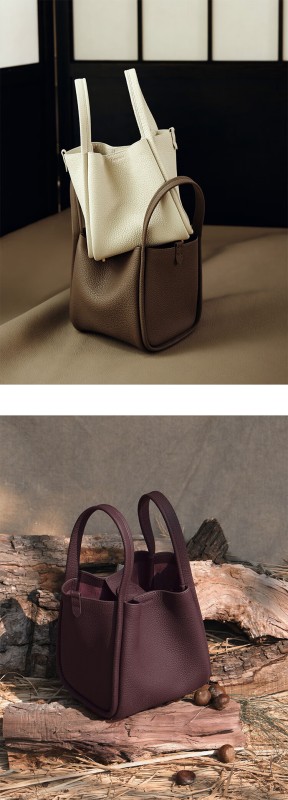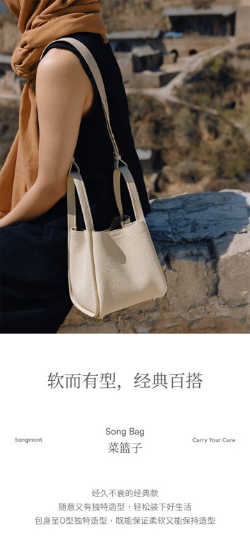 Songmont Medium Vegetable Basket Series Women's Designer Top Layer Cowhide Large Capacity Commuter Handbag_Milk Apricot_New Version Canvas Liner Bag